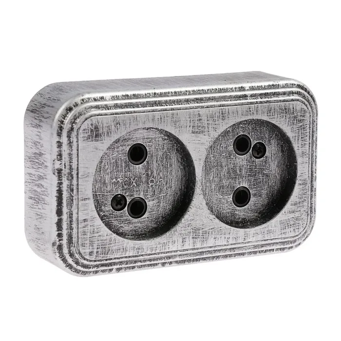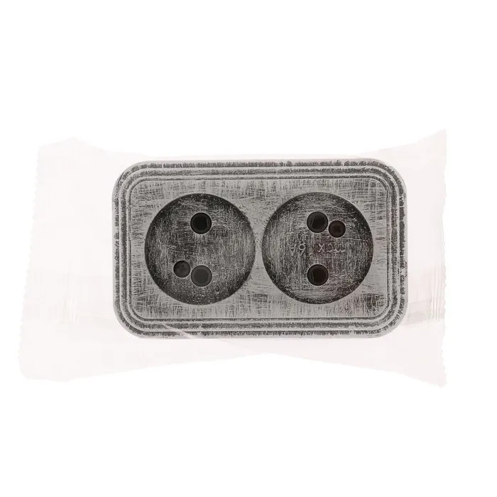 Розетка "Элект" RA 16-237-ЧС, 16 А, 250В, двухместная, открытая, без з/к,черная под серебро — Характеристики