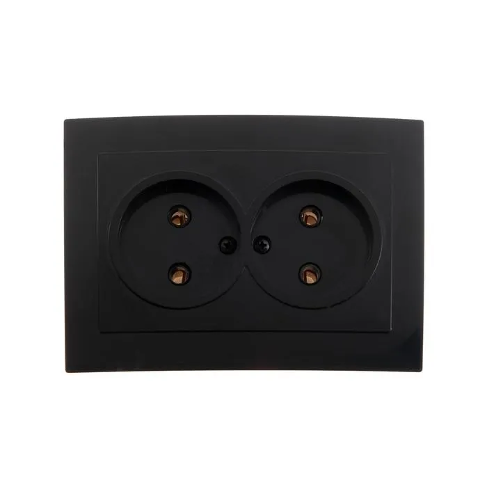 Розетка «Элект» RS 16-237-Ч, двухместная, без з/к, скрытая, черная — Характеристики