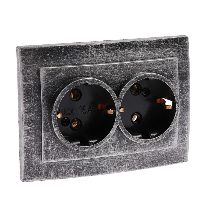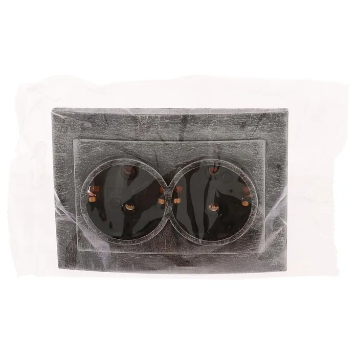 Розетка "Элект" RS 16-238-ЧС, 16 А, 250 В, двухместная, скрытая, с з/к, черная под серебро — Характеристики