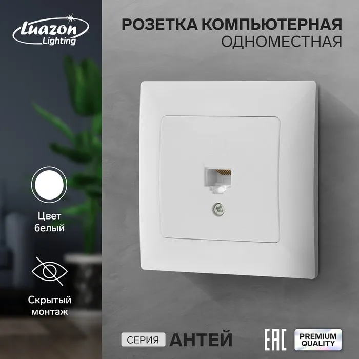 Розетка компьютерная одноместная Luazon Lighting "Антей", скрытая, белая