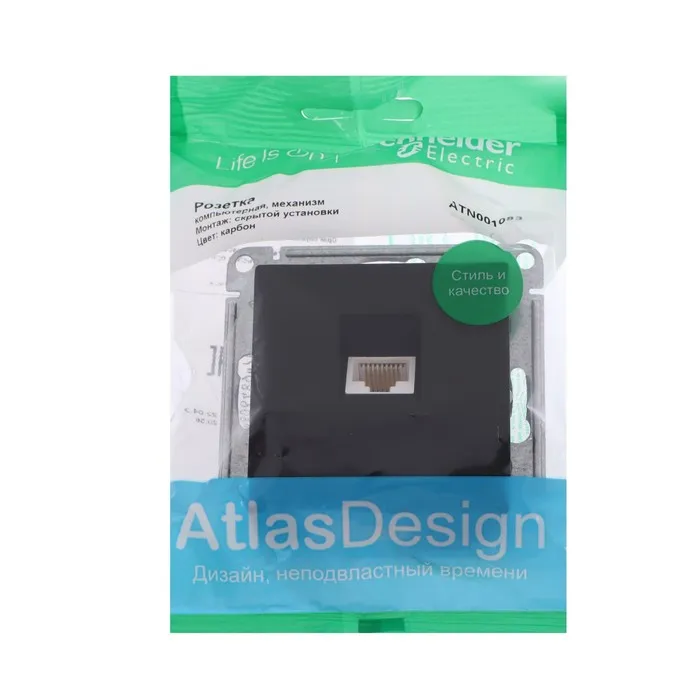 Розетка компьютерная SE ATLASDESIGN, RJ45, встраиваемая, IP20, карбон, ATN001083 — Характеристики