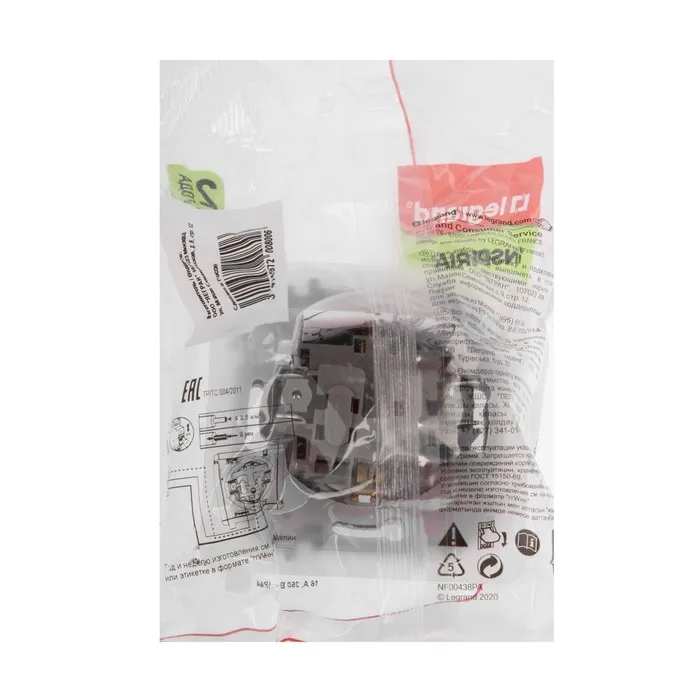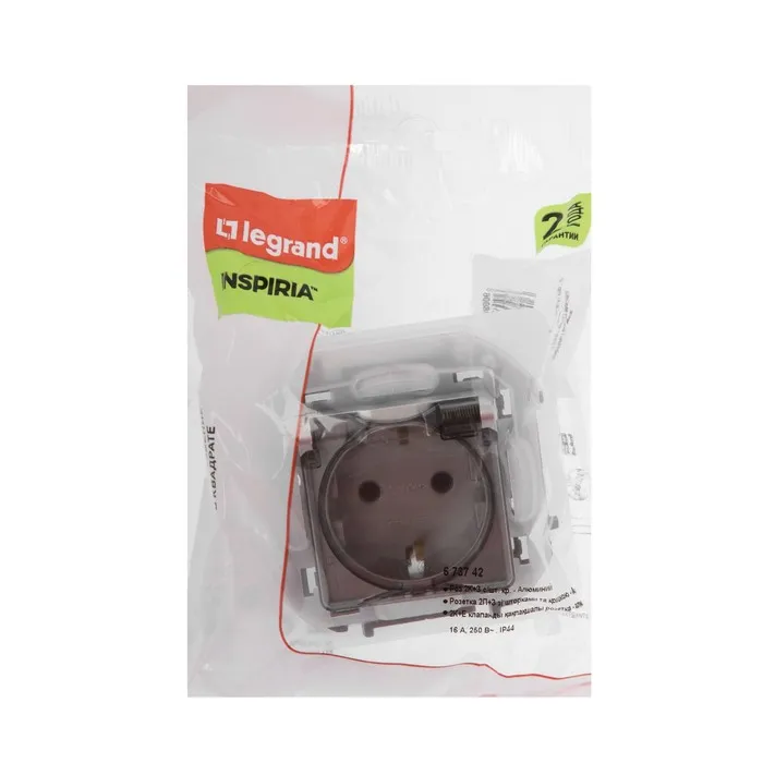 Розетка Legrand INSPIRIA, 2К+З, IP 44, с откидной крышкой и шторками, 16 А, 250 В, Алюминий — Характеристики