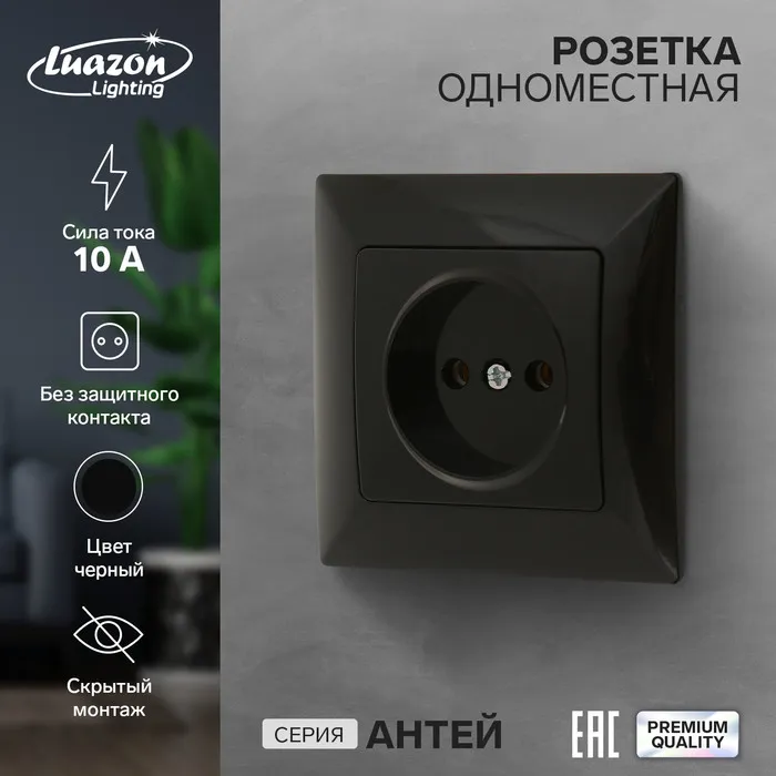 Розетка одноместная Luazon Lighting "Антей", 10 А, скрытая, без з/к, черная — Характеристики