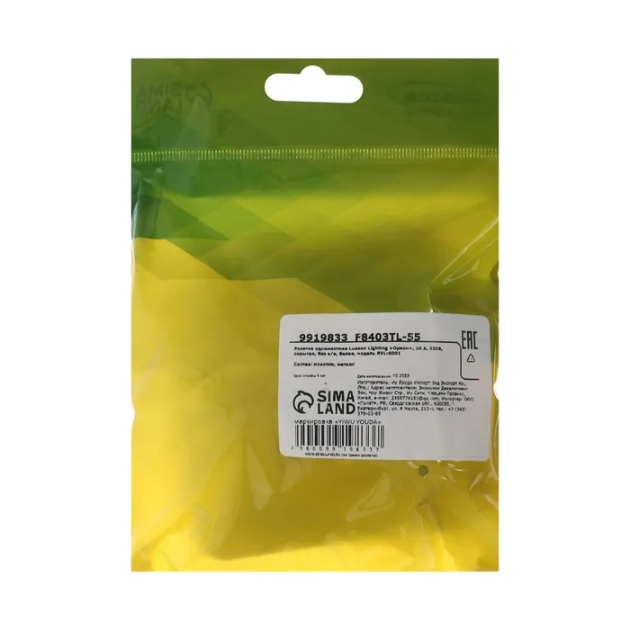 Розетка одноместная Luazon Lighting "Орион", 10 А, скрытая, без з/к, белая — Характеристики