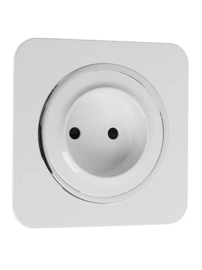 Розетка одноместная, серия Circular, 10 А, скрытый монтаж, без заземления, серебристая рамка, белая — Характеристики