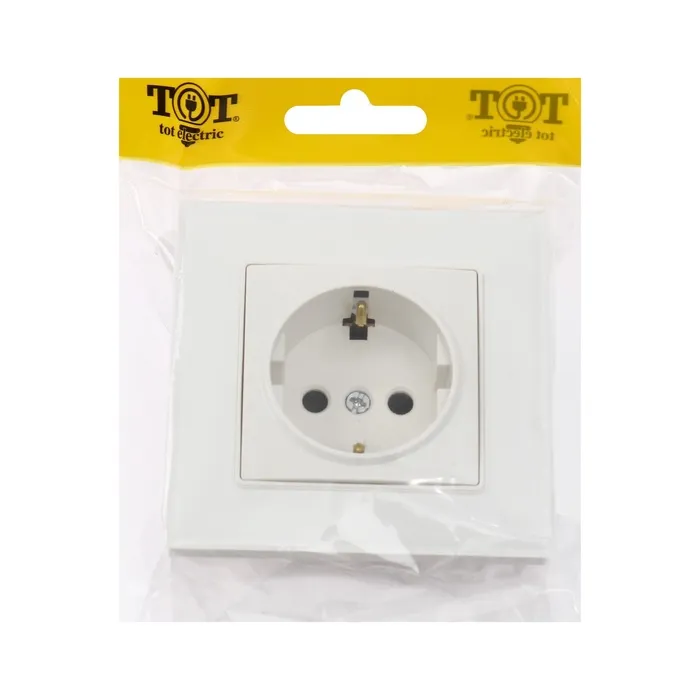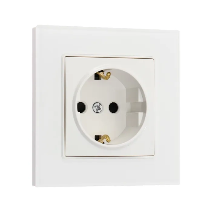 Розетка одноместная TOT Glossy Glass, 16 А, скрытая, с з/к, стекло, белая — Характеристики
