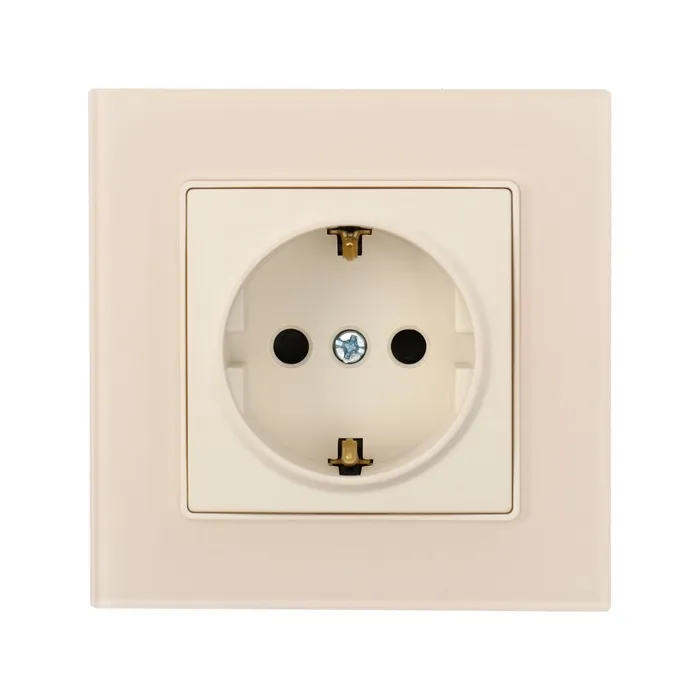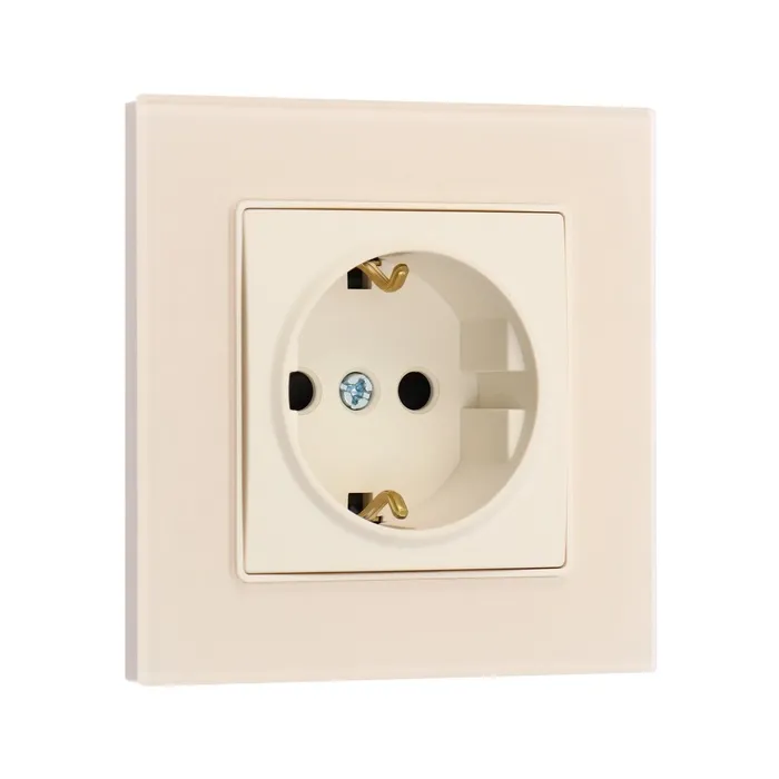 Розетка одноместная TOT Matte Glass, 16 А, скрытая, с з/к, стекло, бежевая — Характеристики