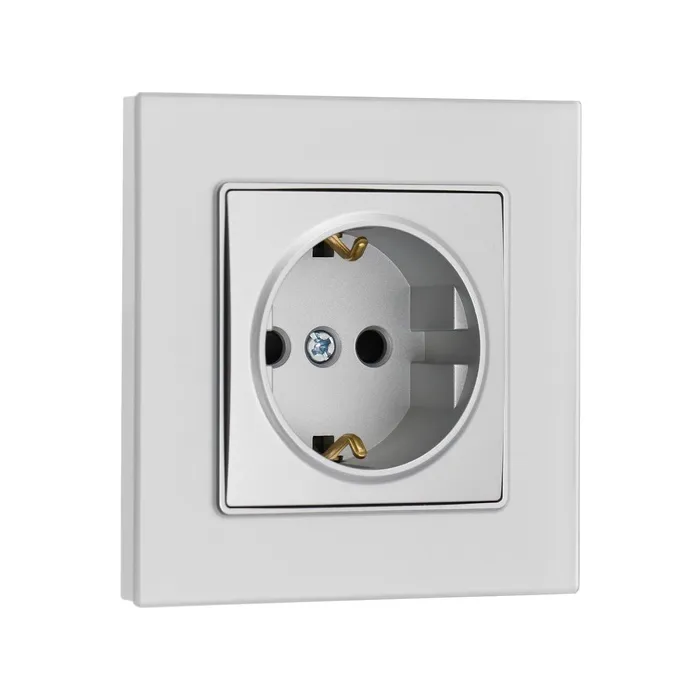 Розетка одноместная TOT Matte Glass, 16 А, скрытая, с з/к, стекло, серебристая — Характеристики