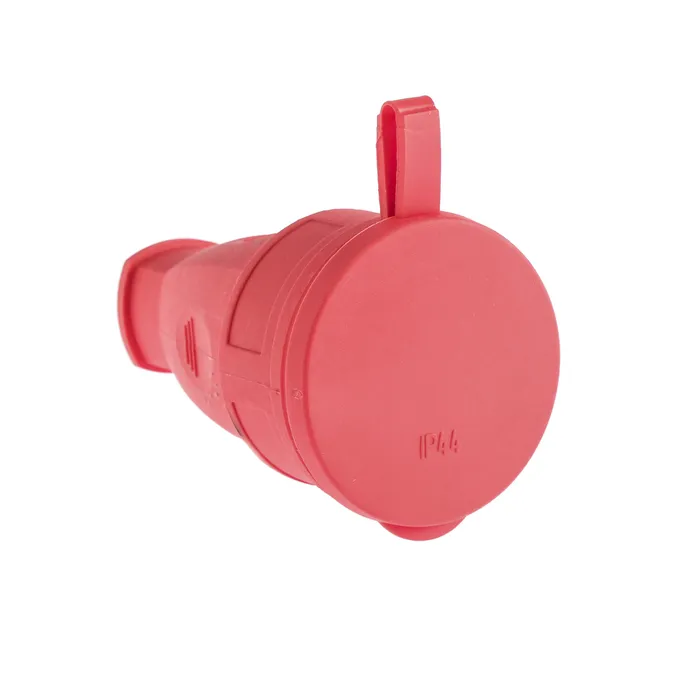 Розетка переносная 16-005, 16 А, 250 В, IP44, с з/к, с заглушкой, каучук, красная