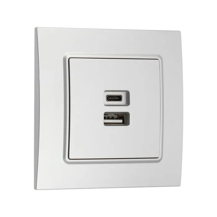 Розетка с USB-A + USB-C разъёмами, 2.1 A, 5В, TOT Elegant, скрытая, серебристая — Характеристики