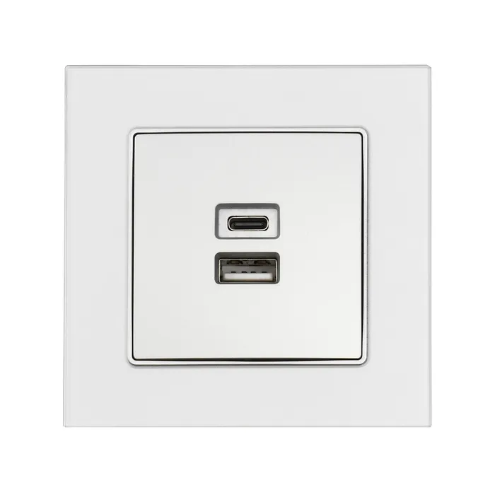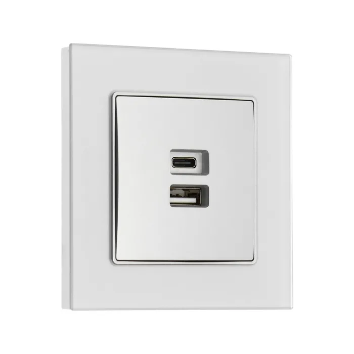 Розетка с USB-A + USB-C разъёмами, 2.1 A, 5В, TOT Matte Glass, скрытая, стекло, серебристая 104396 — Характеристики
