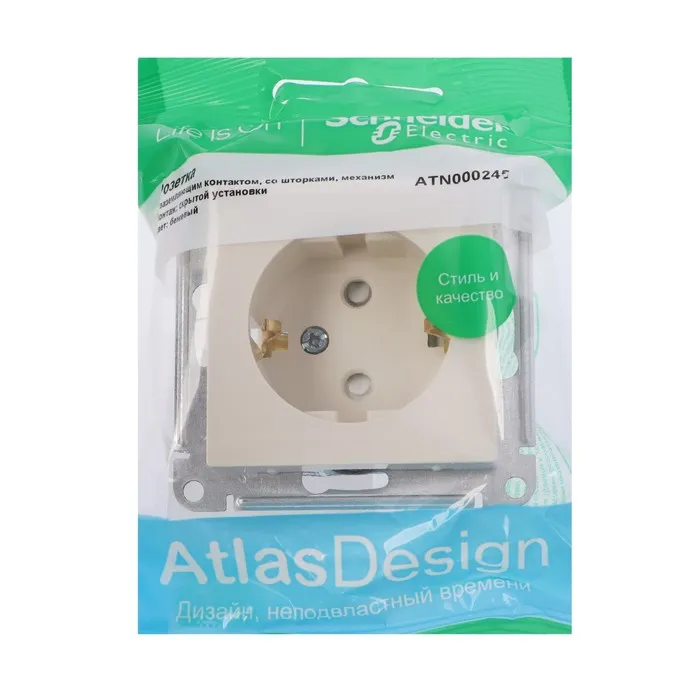 Розетка SE ATLASDESIGN, 16 А, 250 В, встраиваемая, с з/к, шторки, IP20, бежевая, ATN000245 — Характеристики