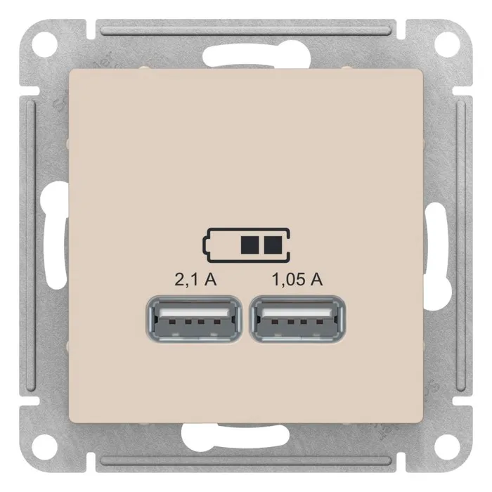 Розетка SE ATLASDESIGN, 2 USB, 2.1/1.05 А, 5 В, бежевая, ATN000233 — Характеристики