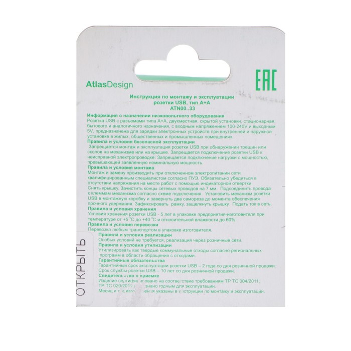 Механизм розетки Schneider Electric AtlasDesign с двумя разъёмами USB с выходными напряжением 5 В постоянного тока и выходами с номинальным током по 2,1 А. USB розетка позволяет напрямую заряжать одно или два мобильных устройства. Пластик с ионами серебра в белом цвете обеспечивает антибактериальный эффект. Лицевые детали из качественного ABS-пластика, устойчивого к царапинам и УФ-излучению. Усиленные прямые монтажные лапки для лучшей фиксации механизма в монтажной коробке.