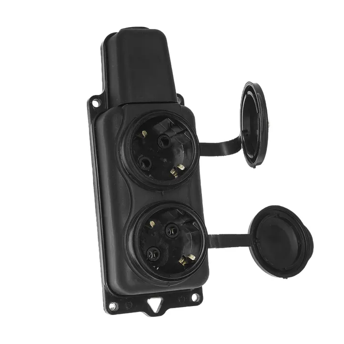 Штепсельные розетки предназначены для изготовления удлинителей со степенью защиты от брызг и пыли IP44. Изделие из ударопрочного пластика выдерживает высокие нагрузки и подходит для подключения силового оборудования.