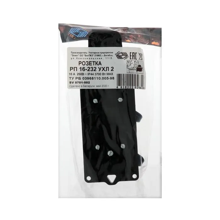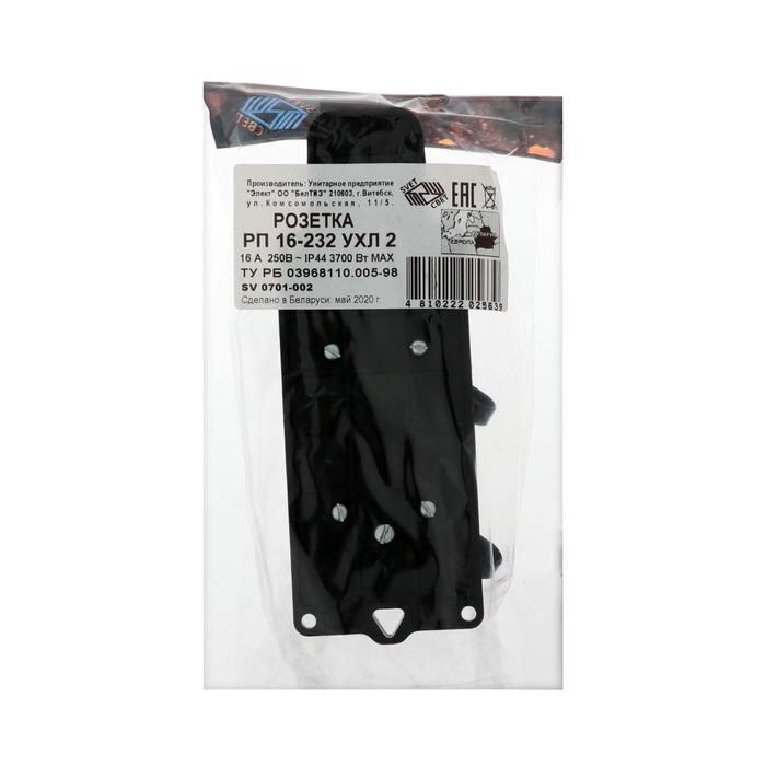 Розетка штепсельная переносная «Элект» РП 16-232, двухместная, с з/к, брызгозащищенная — Характеристики