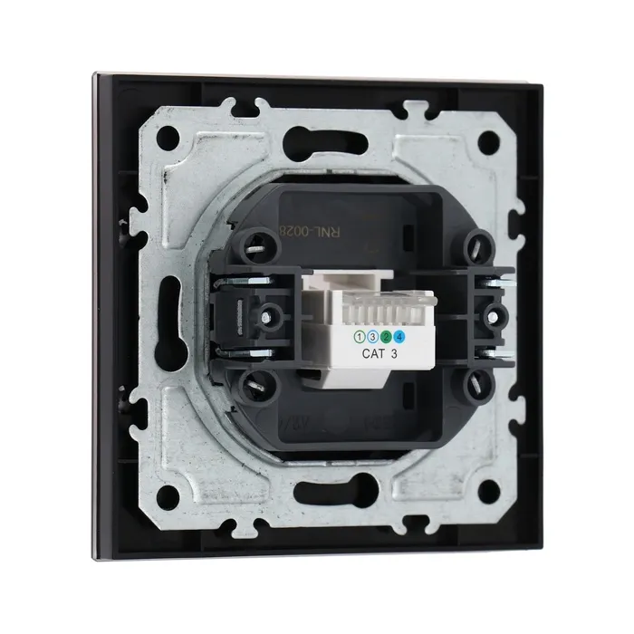 Розетка телефонная одноместная TOT Glossy Glass, скрытая, стекло, черная — Характеристики