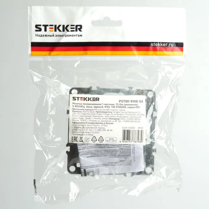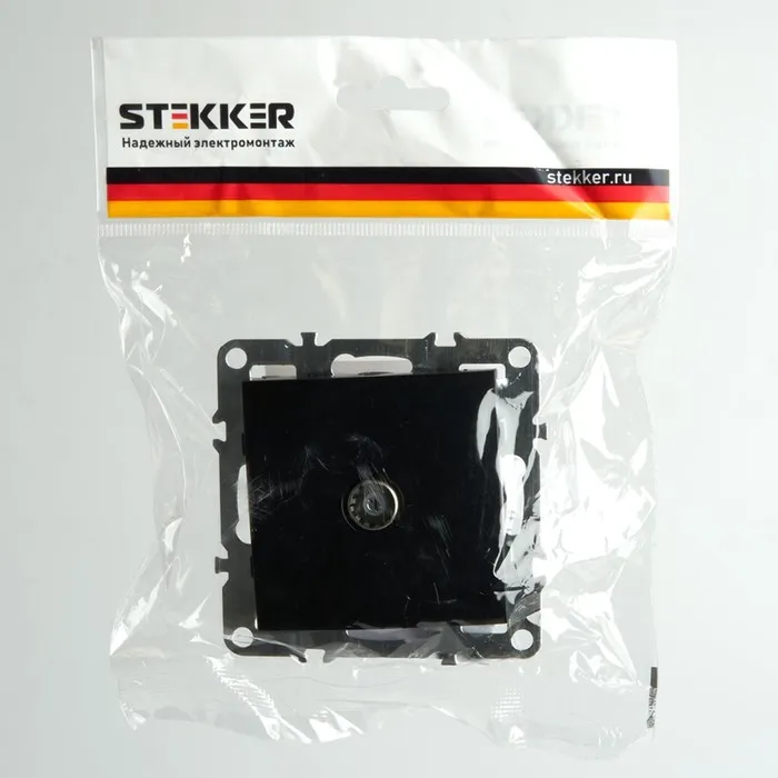 Розетка телевизионная 1-местная, 75 Ом (механизм), STEKKER серия Эрна, PST00-9108-03, черный 1022446 — Характеристики