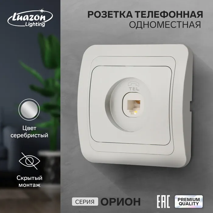 Розетка телефонная одноместная Luazon Lighting "Орион", скрытая, серебристая