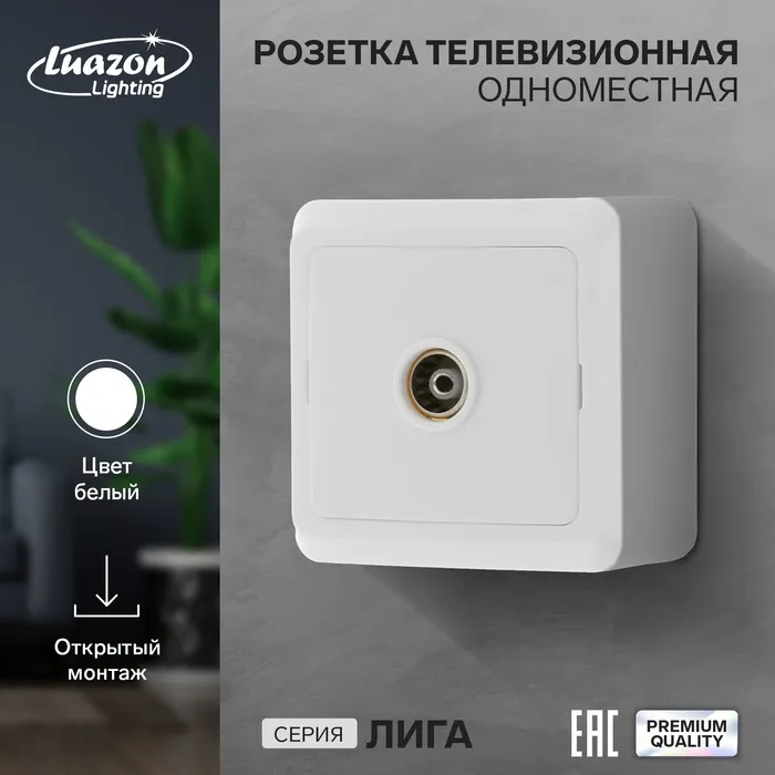 Розетка телевизионная одноместная Luazon Lighting "Лига", накладная, белая