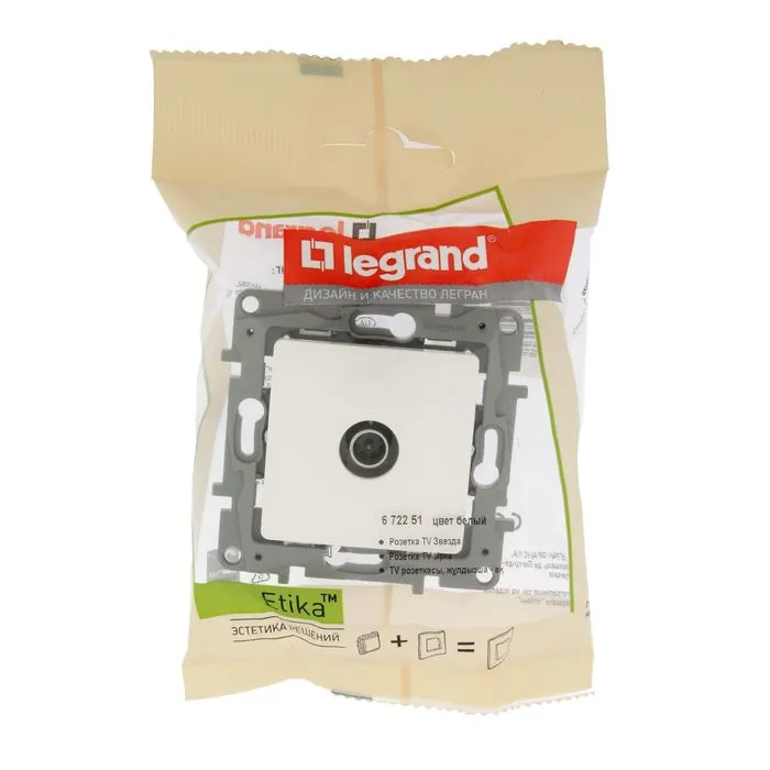 Розетка телевизионная Legrand Etika 672251, одноместная, скрытая, 2дБ, тип "звезда", белая — Характеристики