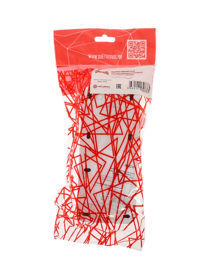 Розетка трёхместная TANGO, 16 А, 250 В, IP20, без заземления, огнеупорный ABS-пластик, белая — Характеристики