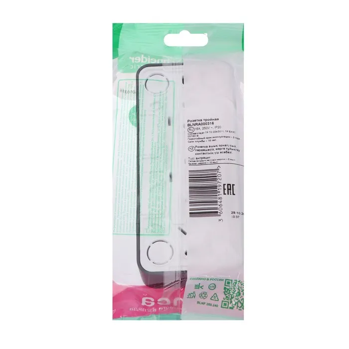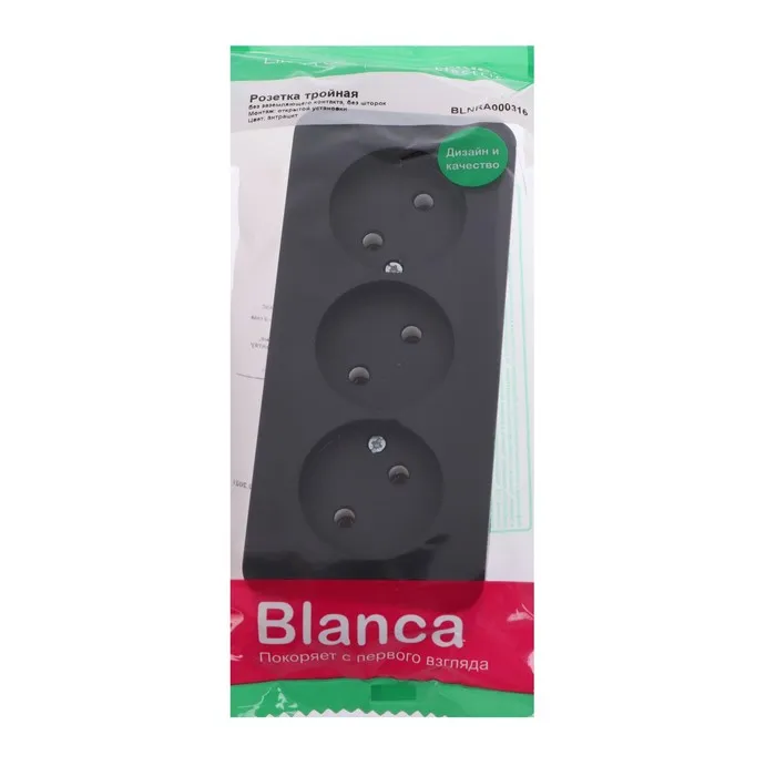 Розетка тройная SE Blanca, 16 А, 250 В, накладная, без з/к, IP20, антрацит, BLNRA000316 — Характеристики