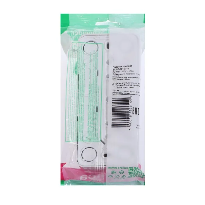 Розетка тройная SE Blanca, 16 А, 250 В, накладная, с з/к, IP20, белая, BLNRA010311 — Характеристики
