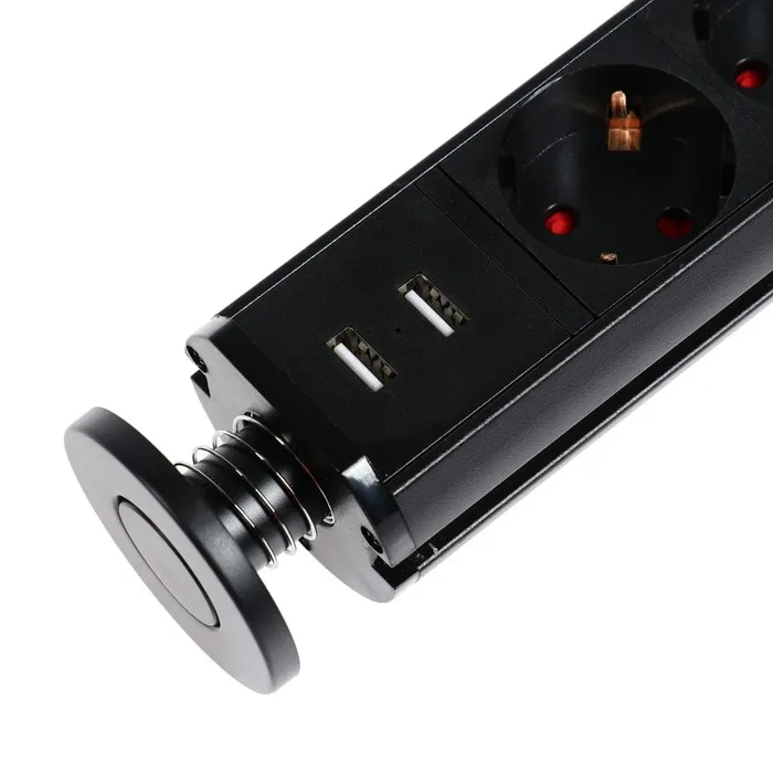 Розетка выдвижная, Luazon, 16 А, трёхместная, в стол, 2xUSB, 2.1 A, черная — Характеристики