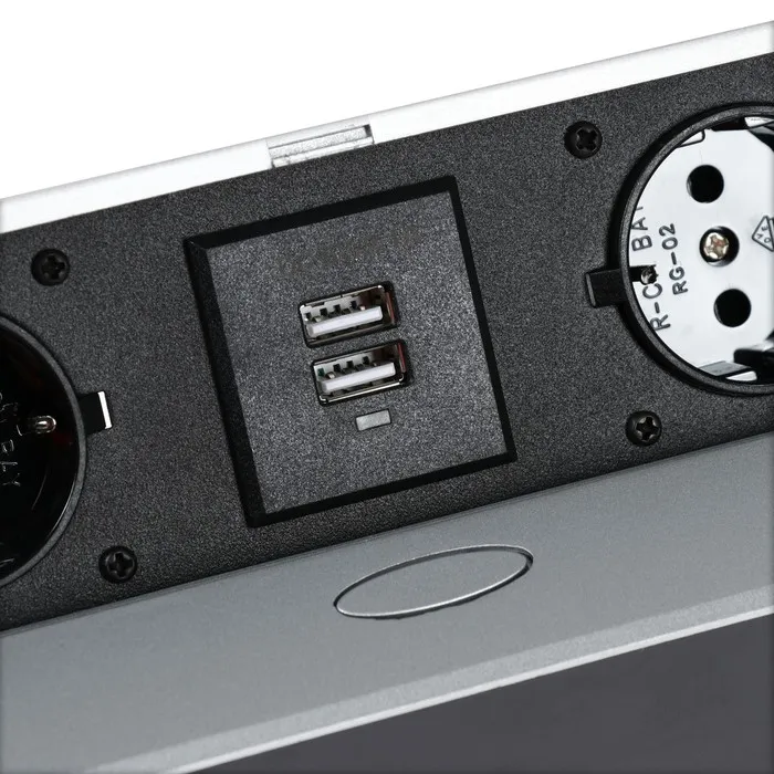 Розетка выдвижная Luazon Lighting, 16 А, двухместная, в стол, 2xUSB, 2.1 A, серебристая — Характеристики