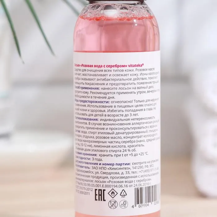 Розовая вода лосьон Витатека с серебром, 100 мл — Характеристики