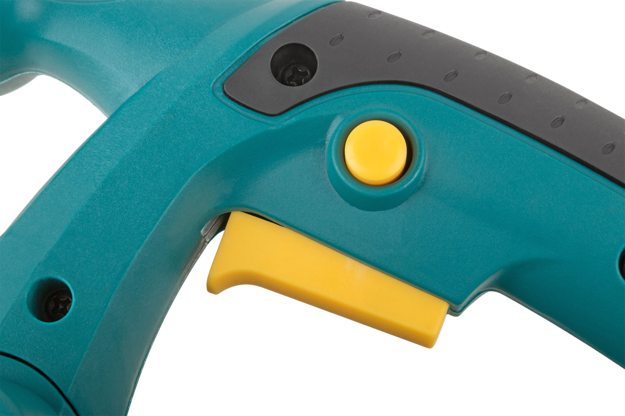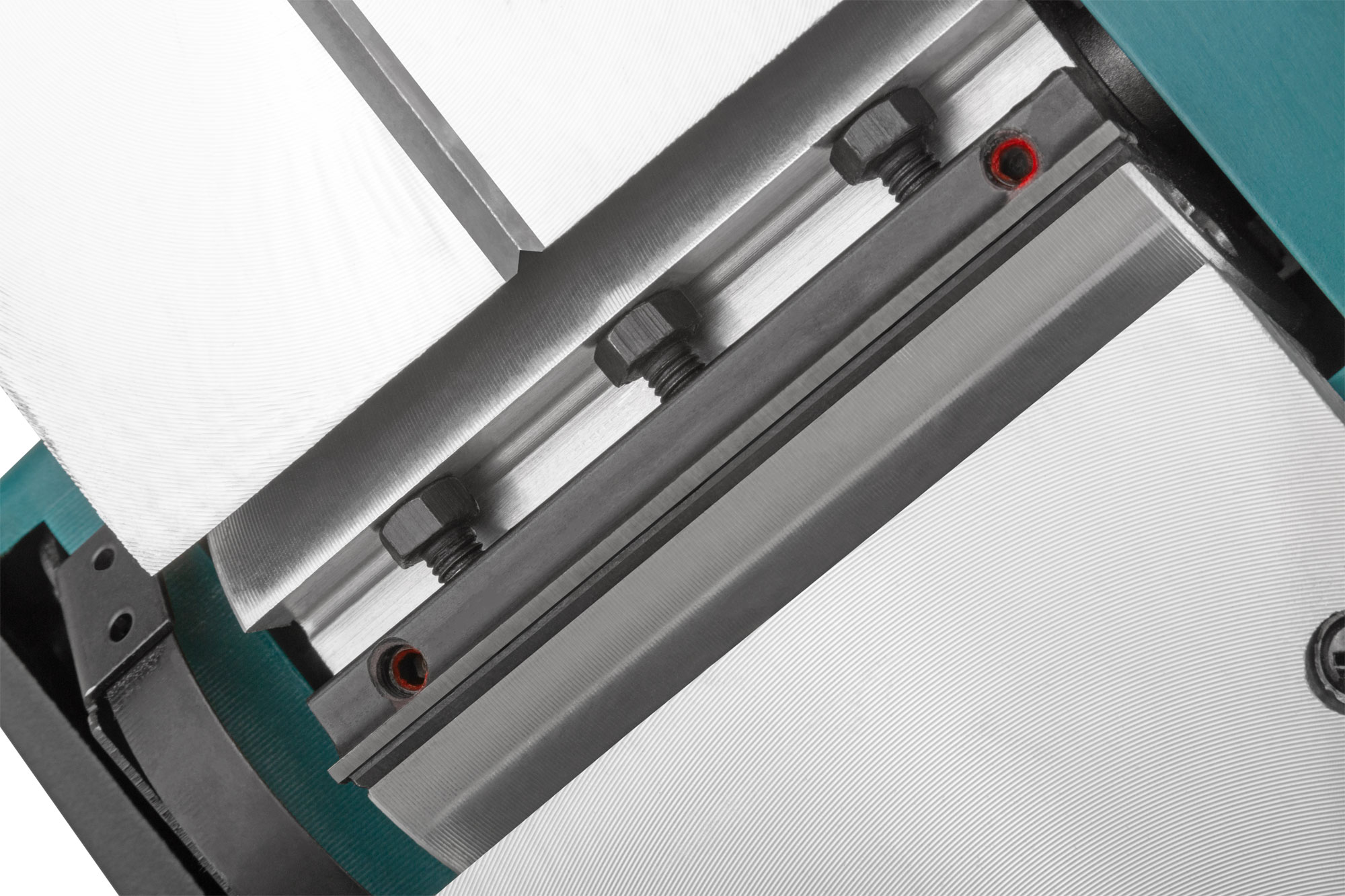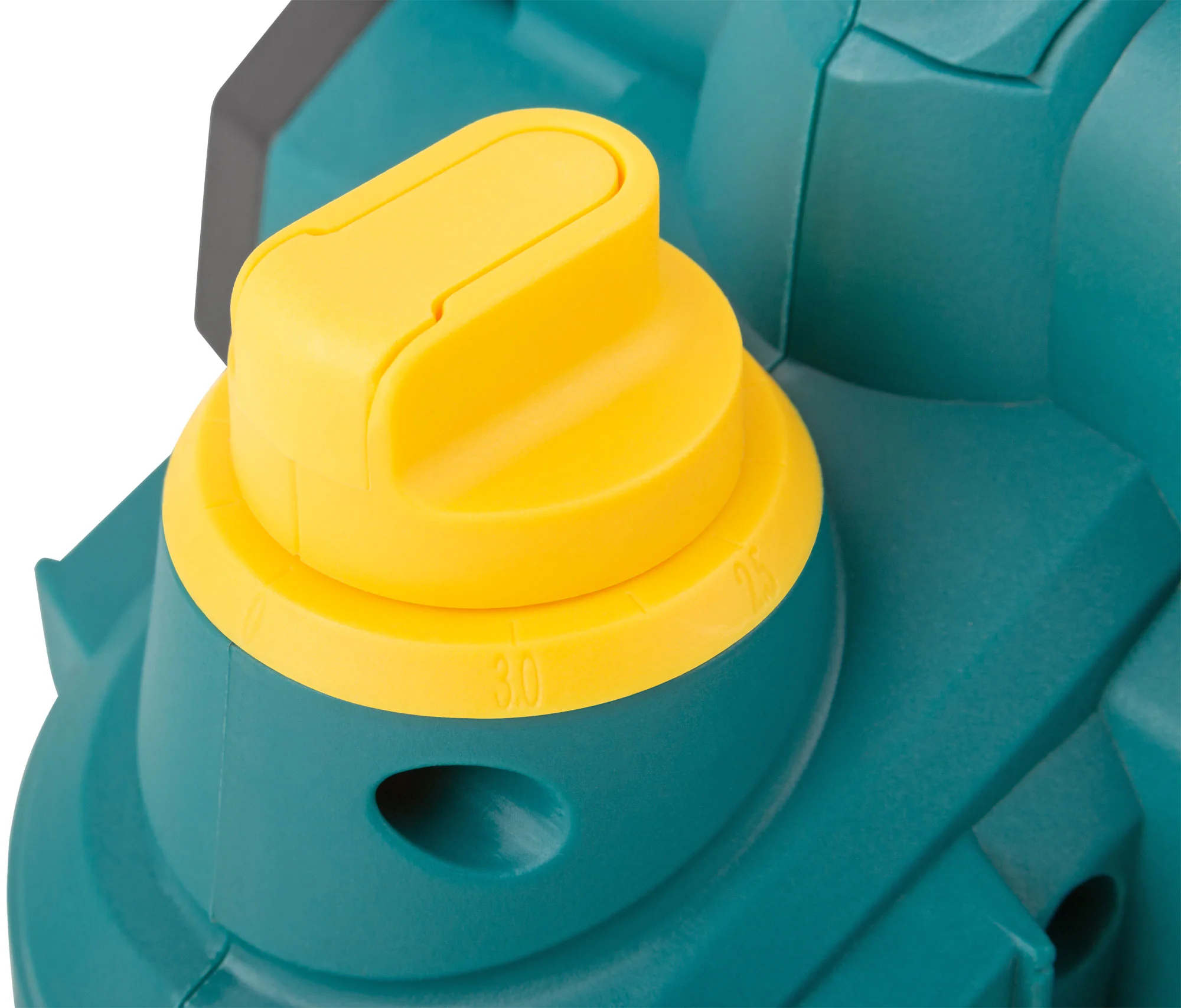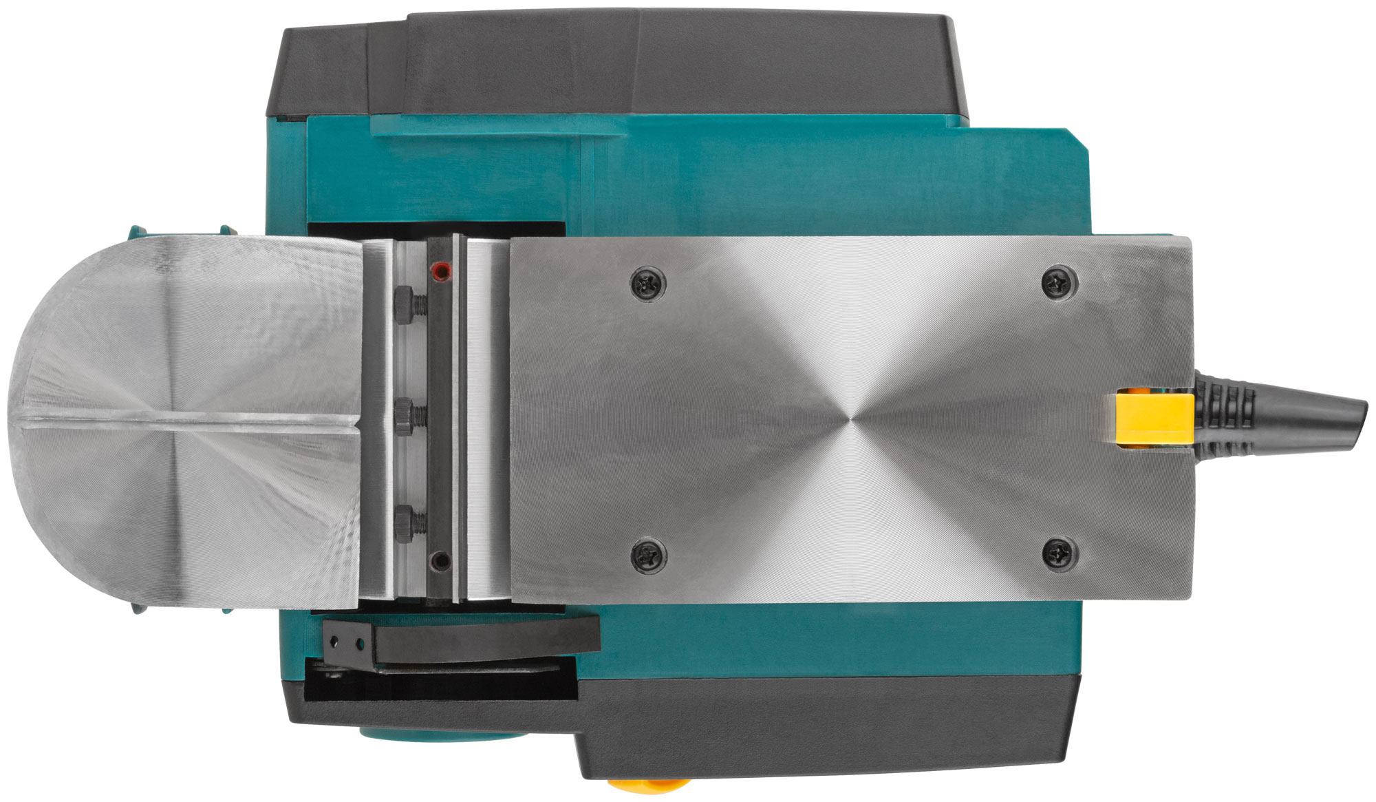 Конструкция рубанка включает мощный двигатель, обеспечивающий скорость вращения до 16000 об/мин, а также трехножевую фрезу для высокой точности обработки. Подошва из литого алюминия и резиновые накладки на рукоятке обеспечивают надежный контроль и устойчивость.