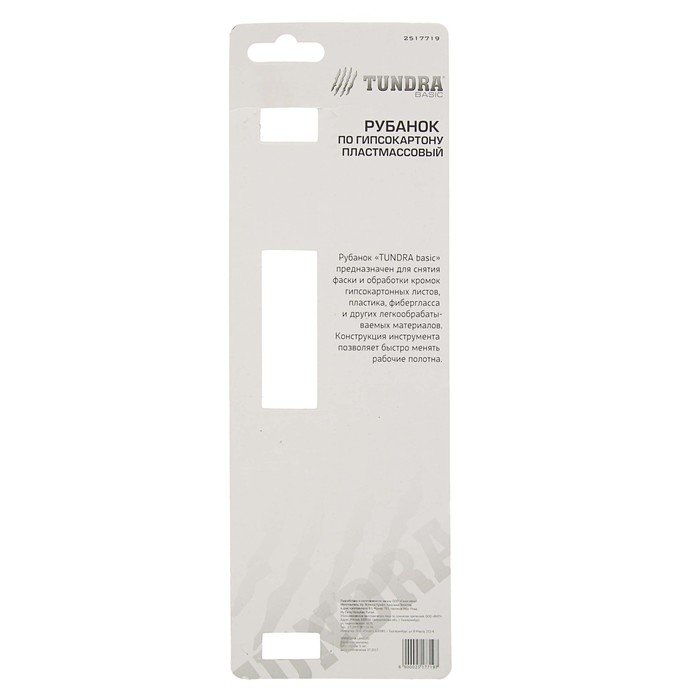 Рубанок по гипсокартону ТУНДРА, пластиковый, 250 х 40 мм — Характеристики