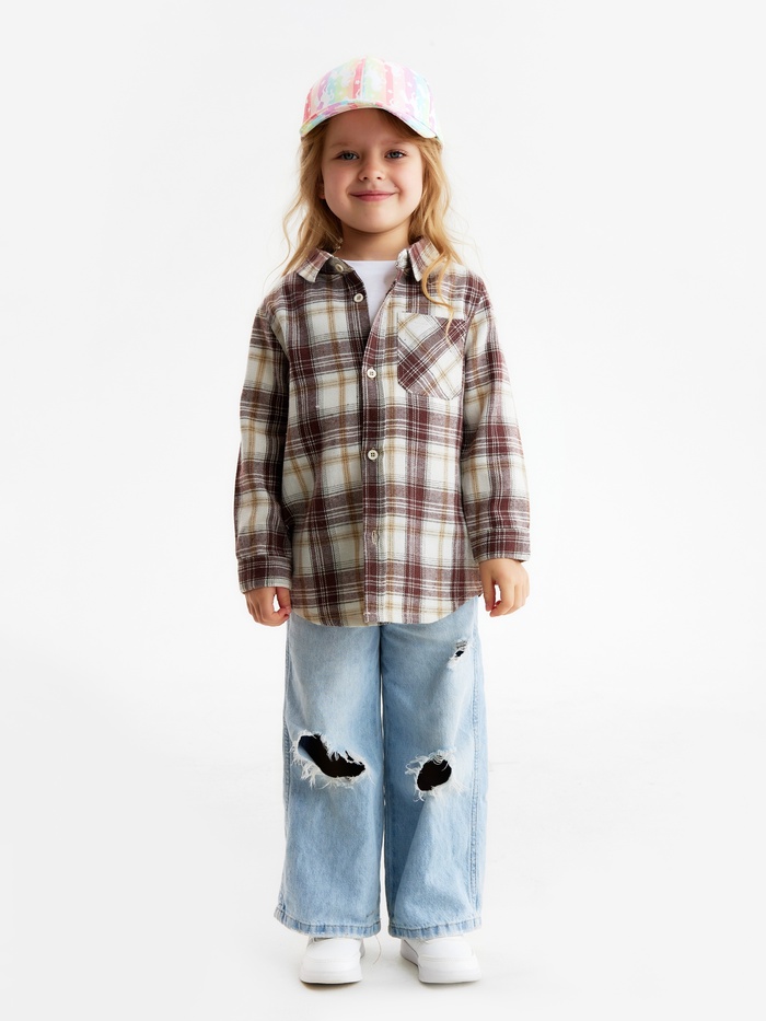 Рубашка детская фланелевая KAFTAN, размер 32 (110-116 см), коричневая — Характеристики