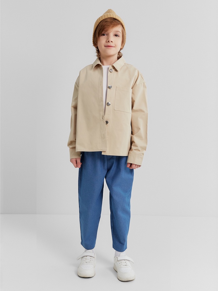 Рубашка детская MINAKU: Jeans collection, цвет бежевый, рост 158 см — Характеристики