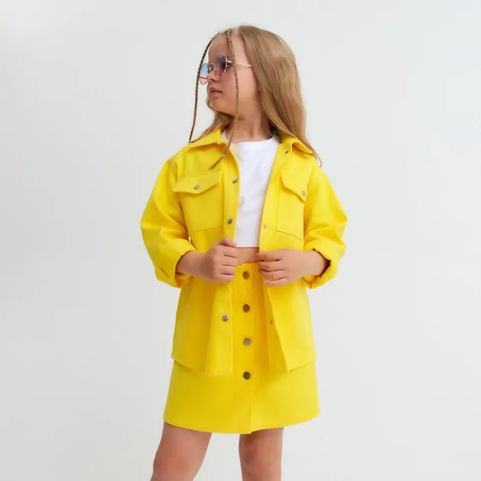 Рубашка для девочки джинсовая KAFTAN, размер 30 (98-104 см), жёлтая — Характеристики