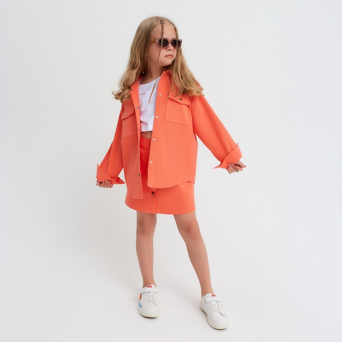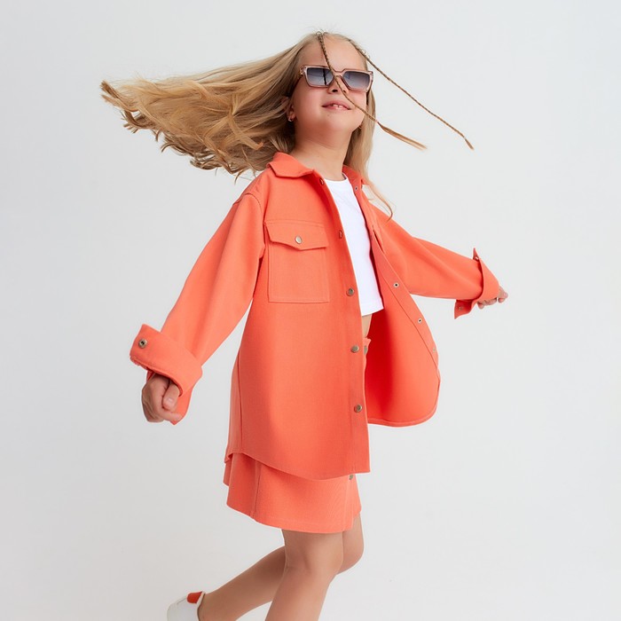Рубашка для девочки джинсовая KAFTAN, размер 34 (122-128 см), оранжевая — Характеристики