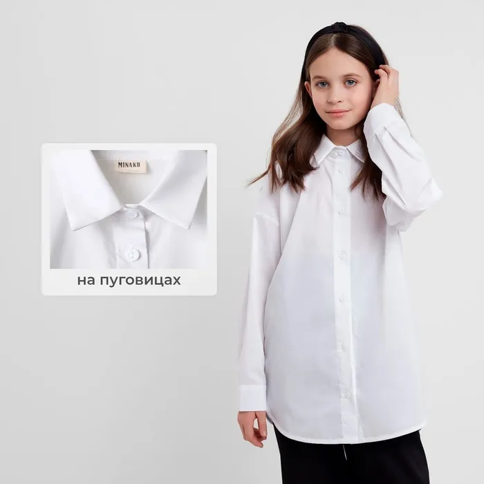 Рубашка для девочки MINAKU, белая, рост 140 см — Характеристики