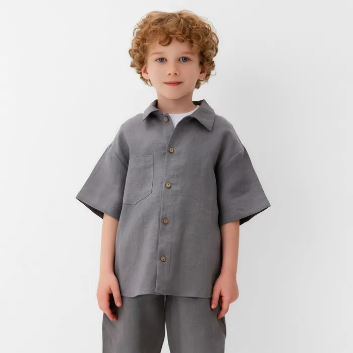 Рубашка для мальчика KAFTAN Linen, размер 32 (110-116 см), серая — Характеристики