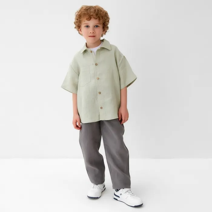 Рубашка для мальчика KAFTAN Linen, размер 34 (122-128 см), зелёная — Характеристики