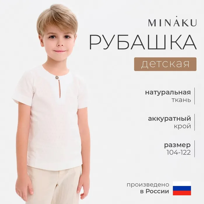 Рубашка для мальчика MINAKU: Cotton Collection, белая, рост 110 см — Характеристики