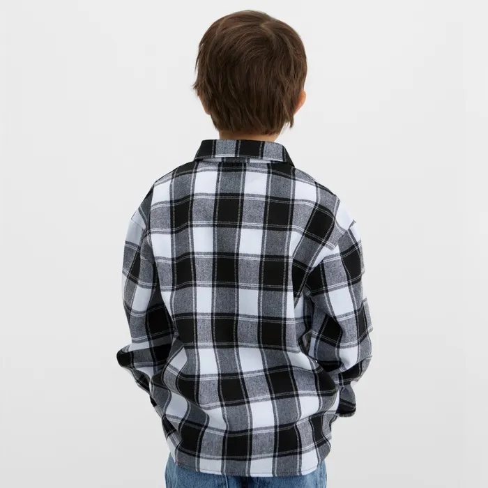 Рубашка для мальчика в клетку KAFTAN, размер 32 (110-116 см), бело-серая — Характеристики