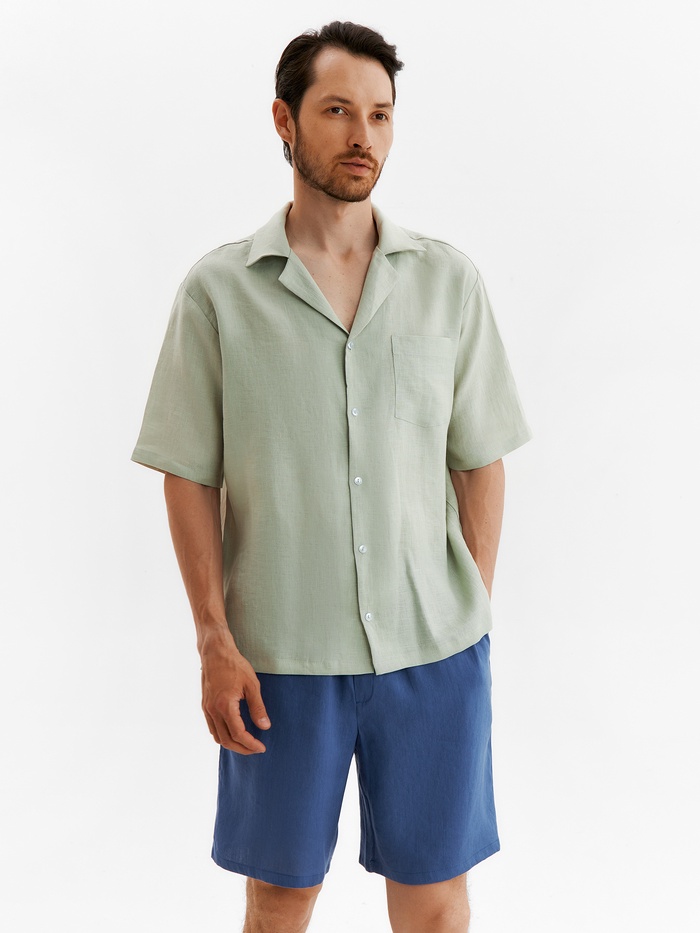 Представьте: солнечный день, вы гуляете по парку, и вас окружает ощущение легкости и комфорта. Эта рубашка мужская в нежном пастельно-зелёном оттенке, добавит вашему образу свежести и непринужденности. Это не просто одежда, это – ваше летнее настроение в каждом движении.
