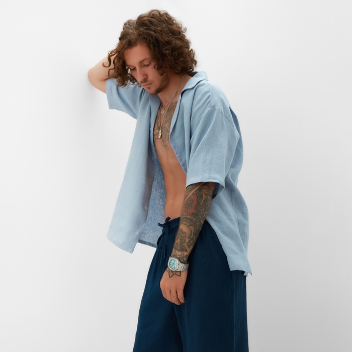 Рубашка мужская с коротким рукавом MIST, размер 56, голубая