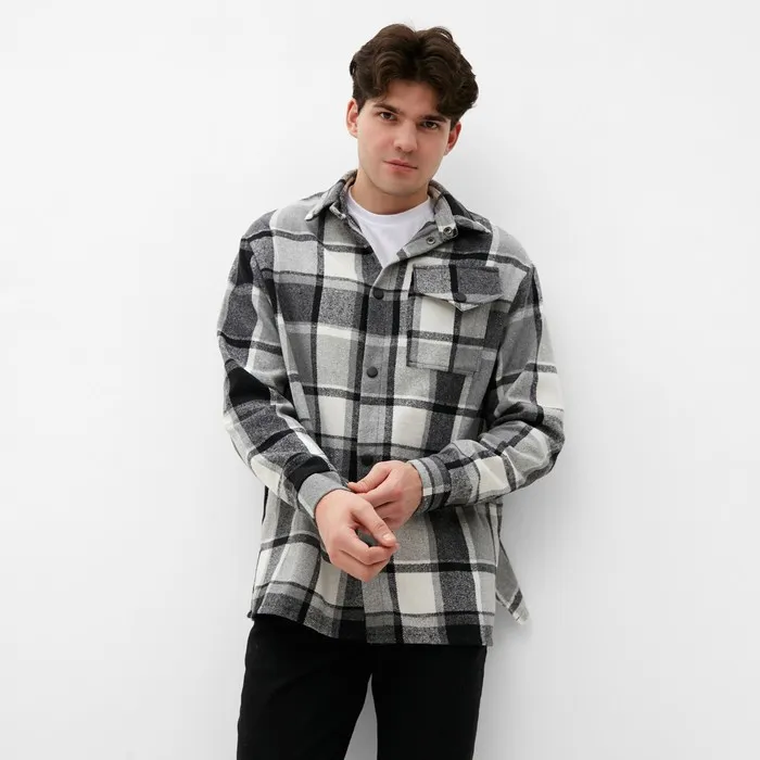 Рубашка мужская в клетку MIST, размер 46, черный/белый