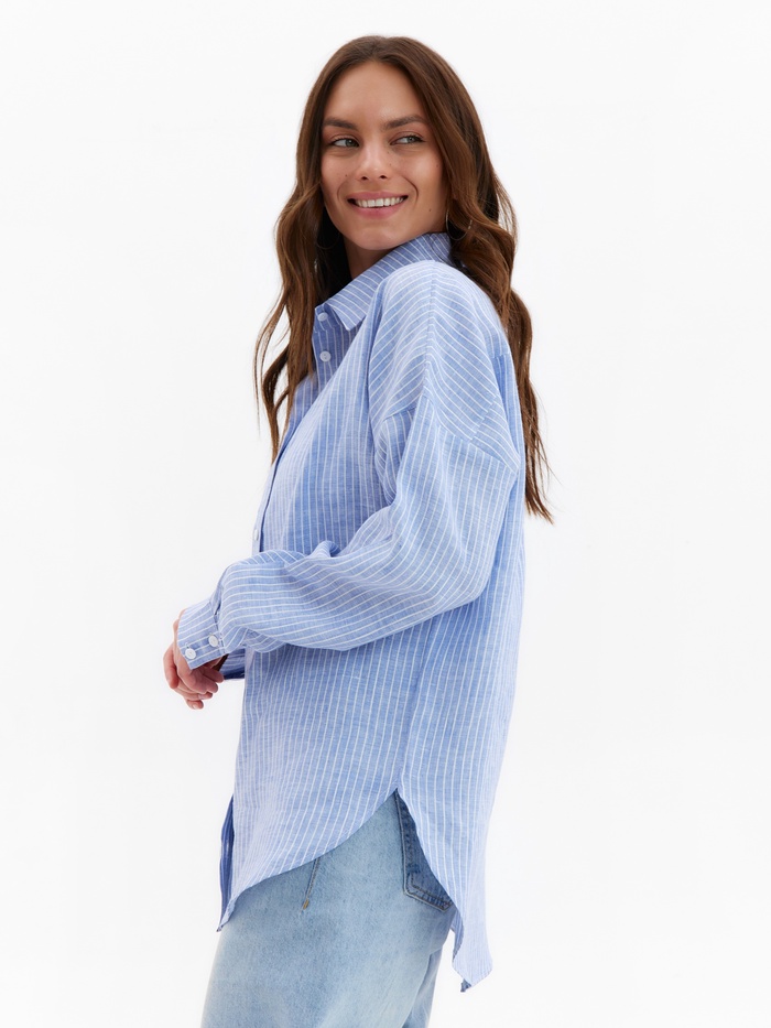 Рубашка женская MINAKU oversize в полоску, белая/голубая, размер 46 — Характеристики
