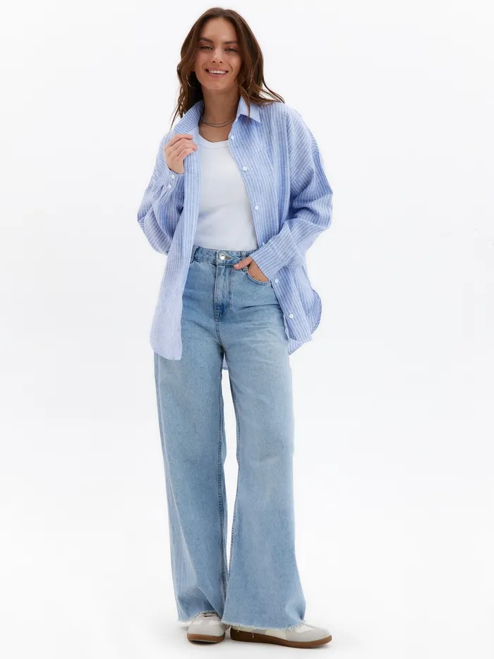 Рубашка женская MINAKU oversize в полоску, белая/голубая, размер 46 — Характеристики