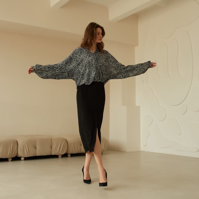 Рубашка женская MINAKU: Silk pleasure цвет чёрный/белый, размер 48