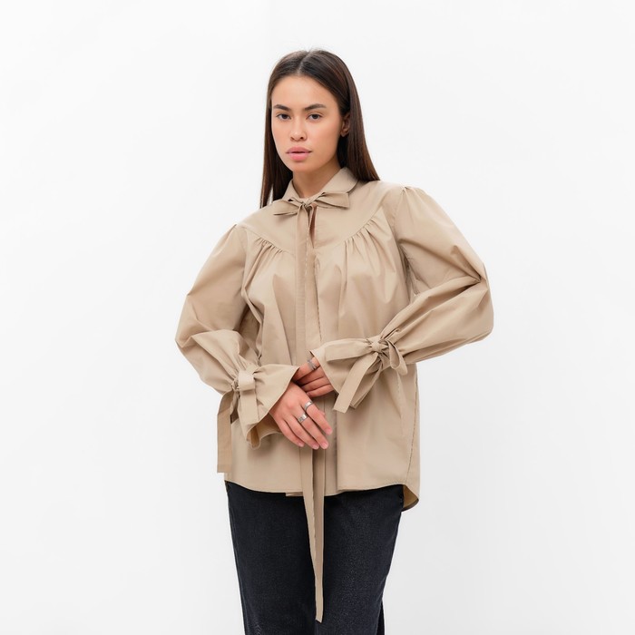 Рубашка женская с лентами MIST, размер 44, бежевый