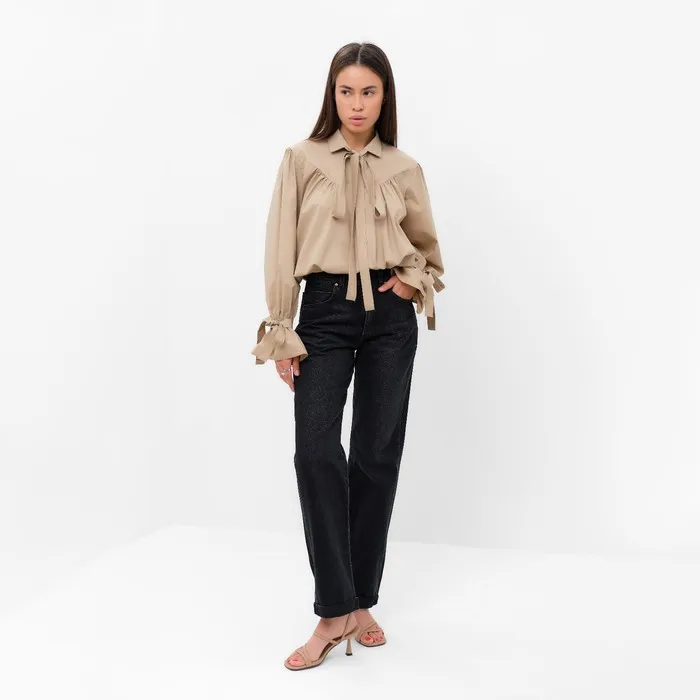 Рубашка женская с лентами MIST, размер 44, бежевый — Характеристики